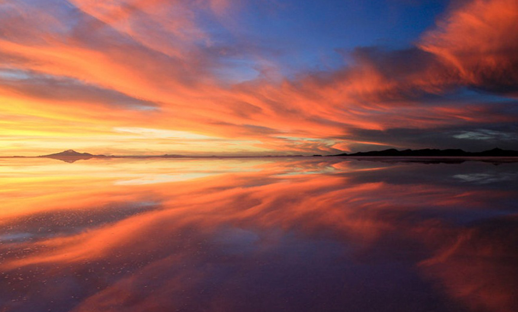 The Bolivian salt flats stretch 4,050 square miles and exist due to evaporated prehistoric lakes. At certain times of year, a thin layer of water covers the flats reflecting the sky above. The harsh beauty and isolated nature of the flats makes for a unique experience whatever the weather.